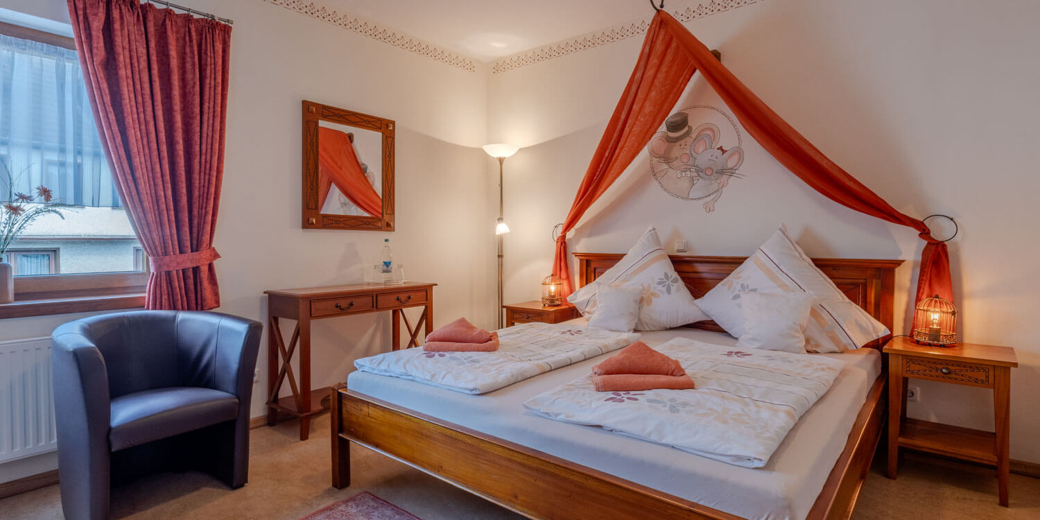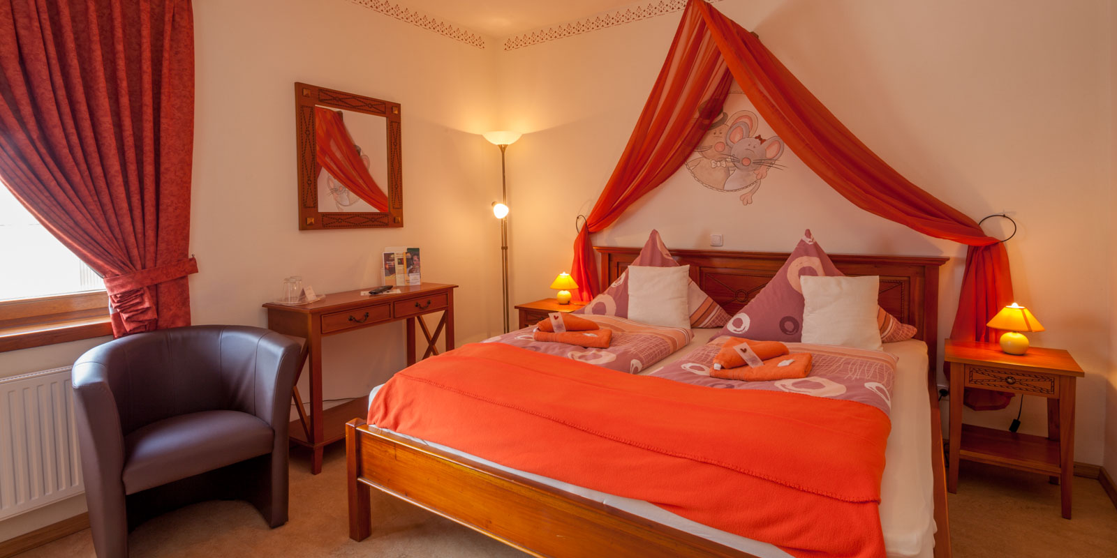 Wir bitten um Voranmeldung. - Hunde sind bei uns erlaubt, auch (angeleint) im Restaurant, außer in der Hochzeitssuite, im Romantik-Familienzimmer und in den kleinen Zimmern.